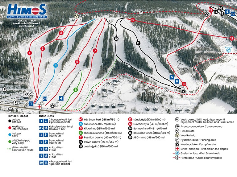 Химос (Himos) — это один из самых популярных горнолыжных курортов в Финляндии, расположенный в центральной части страны, всего в 7 км от города Jämsä. Курорт известен своими отличными условиями для катания на лыжах и сноуборде, а также разнообразными возможностями для отдыха и активного туризма в любое время года.
