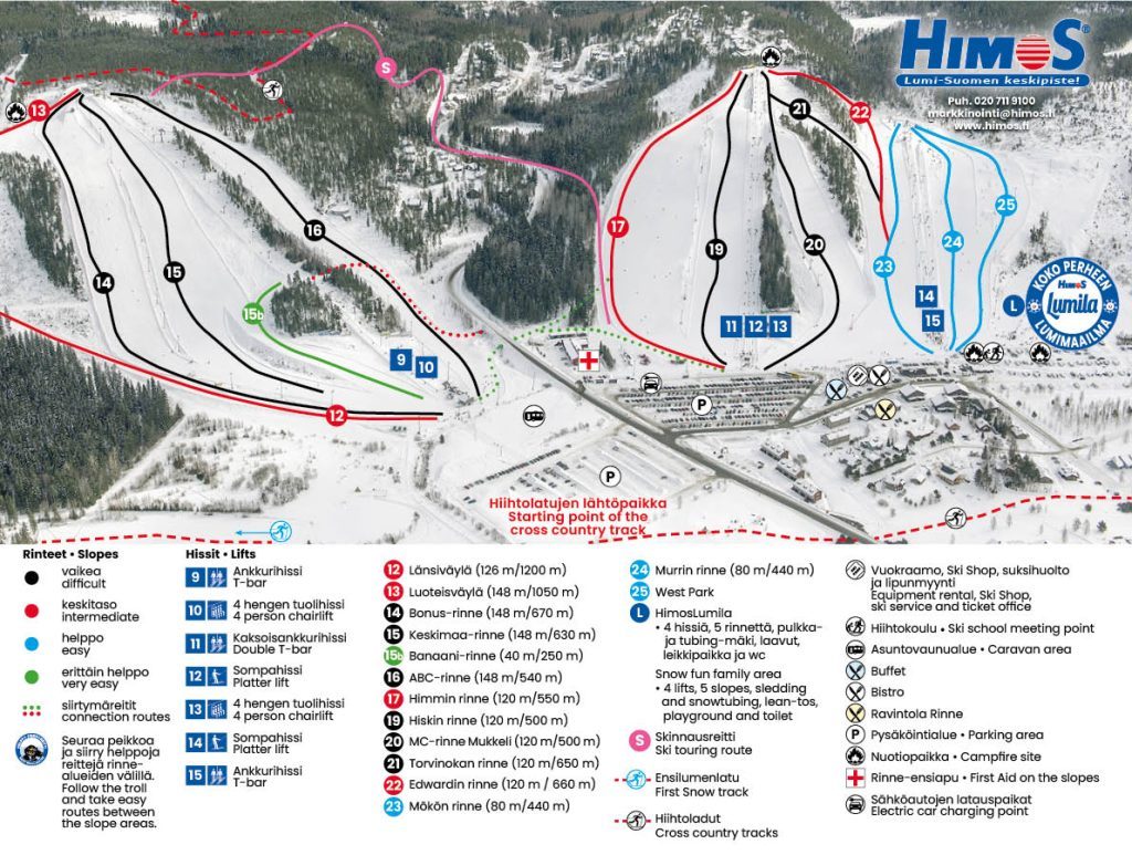 Химос (Himos) — это один из самых популярных горнолыжных курортов в Финляндии, расположенный в центральной части страны, всего в 7 км от города Jämsä. Курорт известен своими отличными условиями для катания на лыжах и сноуборде, а также разнообразными возможностями для отдыха и активного туризма в любое время года.